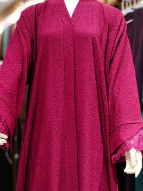 Bubble Crepe Lace Cuff Cut Abaya (All Colors Available )