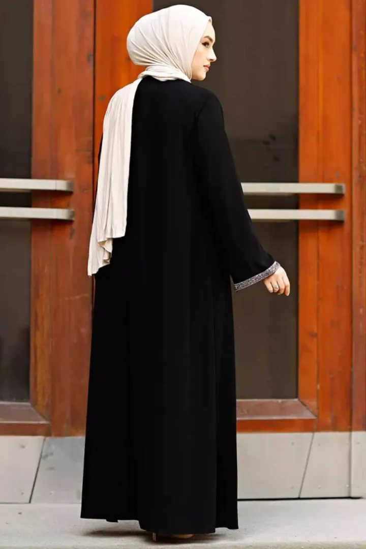 Step into a charmed life with the Black Nida Zipper Abaya for Women. This modern abaya combines vintage charm with contemporary style, featuring exquisite sequence and beadwork. Crafted from soft and light Nida fabric, this abaya is perfect for all your casual and formal occasions. With its front zipper design, it adds a touch of elegance to your ensemble. Don’t miss out on this captivating piece that effortlessly blends fashion and comfort